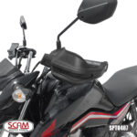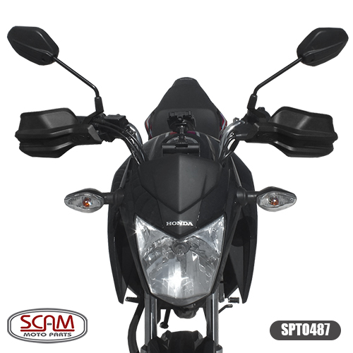 • Desenvolvido para proporcionar conforto, o protetor de mãos Scam protege as mãos do piloto do contato com insetos, cascalho, galhos, lama e afins durante o trajeto, também é capaz de absorver pequenos impactos e reduzir a chance de danos aos manetes em caso de tombos e quedas. Com design arrojado, além do conforto este acessório incrementa o visual da motocicleta sem interferir na ciclística.