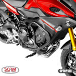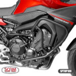 • Desenvolvido para absorver os impactos e manter a integridade do chassi em caso de tombos e quedas, o protetor de motor e carenagem Scam reduz a chance de danos mais graves ao motor da motocicleta e suas carenagens nestas situações, proporcionando tranquilidade ao pilotar e manobrar. Com design arrojado este protetor incrementa o visual da motocicleta, conta com o conforto da PEDALEIRA RETRÁTIL removível e é compatível com a fixação de faróis auxiliares.